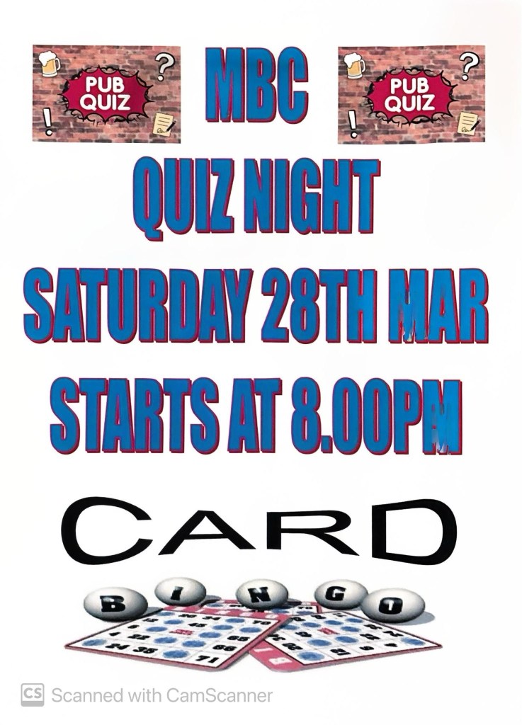 MBC Quiz Night will also return in March! If you’ve not managed to get to one before, come and have a go. You’ll never know if you can win if you don’t try! There’ll also be the usual other fun & games to try your luck at! Hope to see you there!