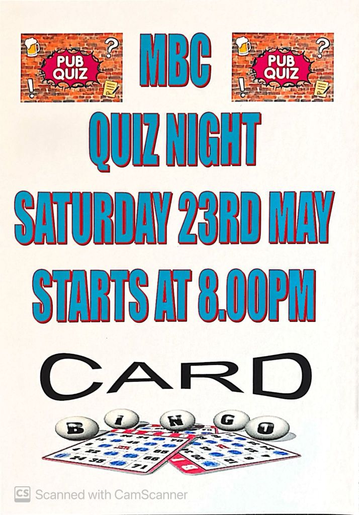 MBC Quiz Night will also return in May! If you’ve not managed to get to one before, come and have a go. You’ll never know if you can win if you don’t try! There’ll also be the usual other fun & games to try your luck at! Hope to see you there!