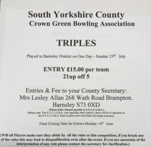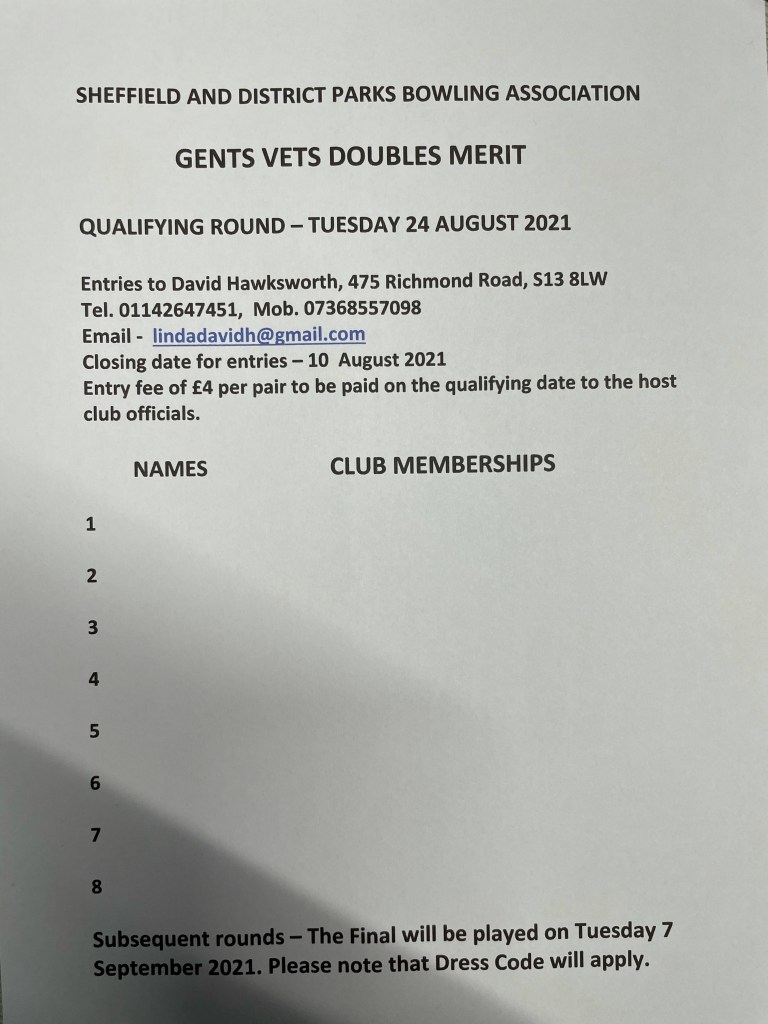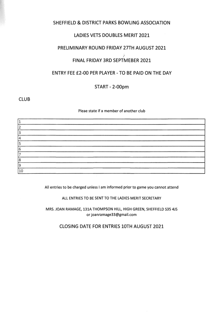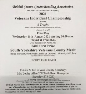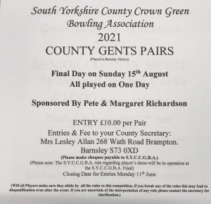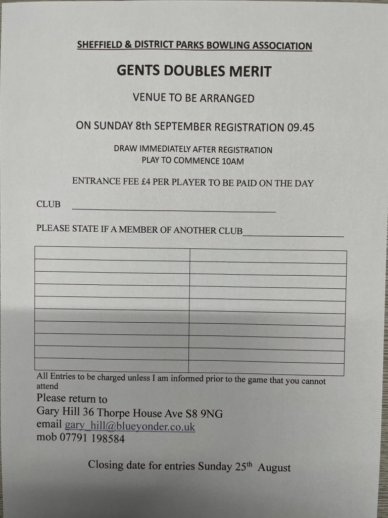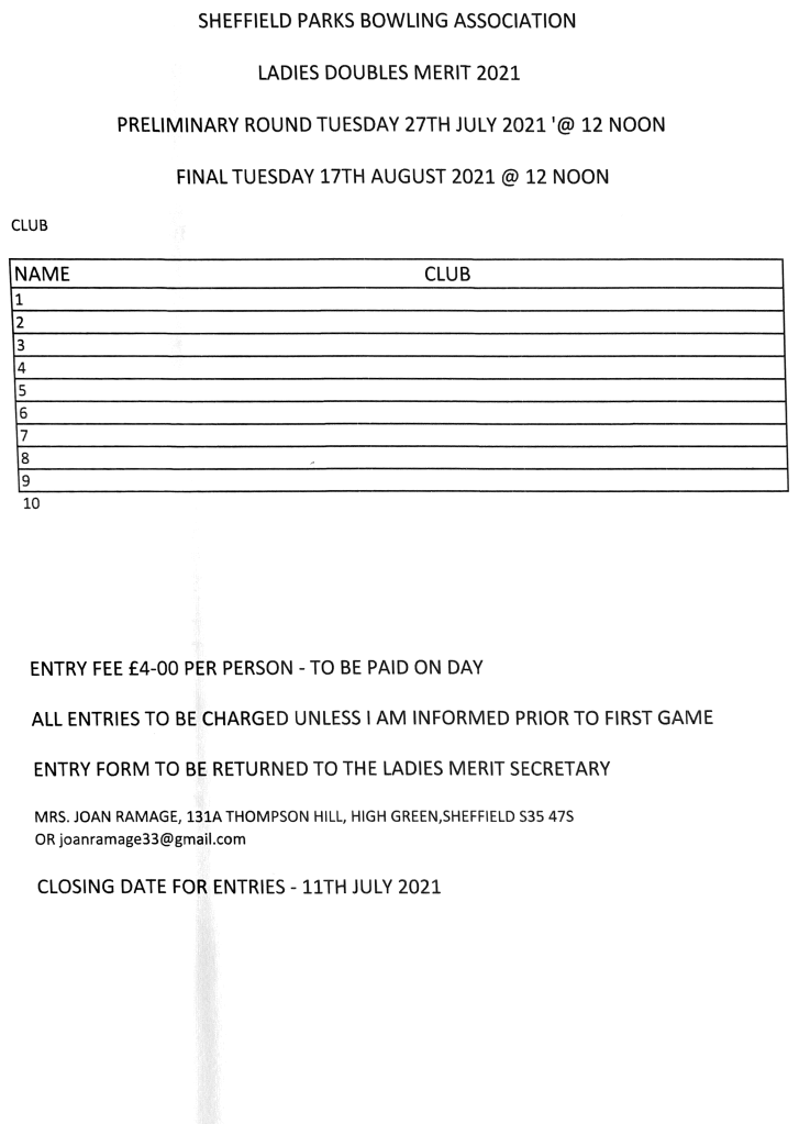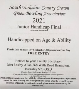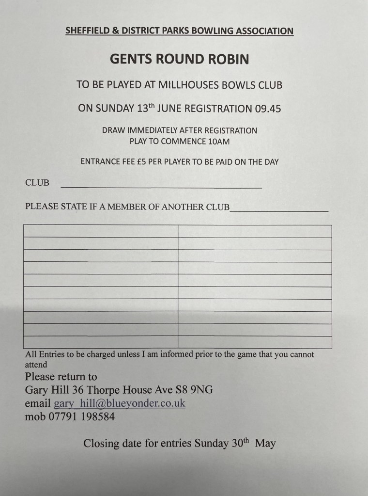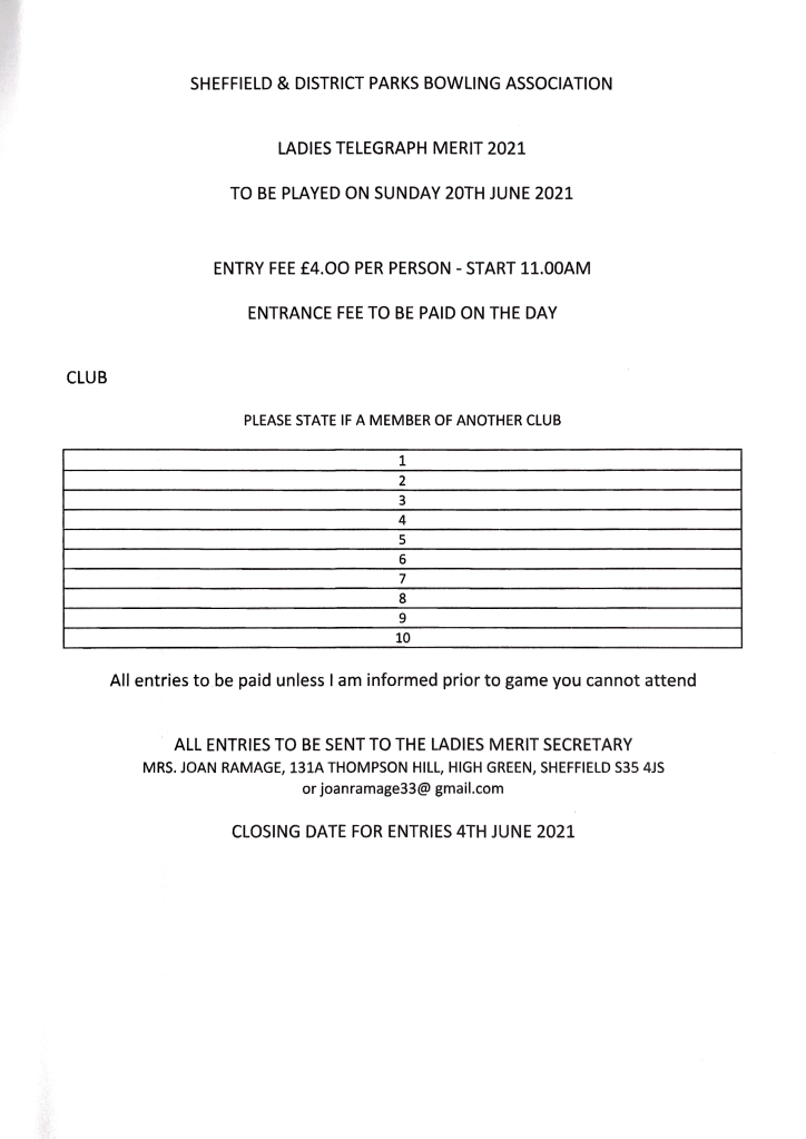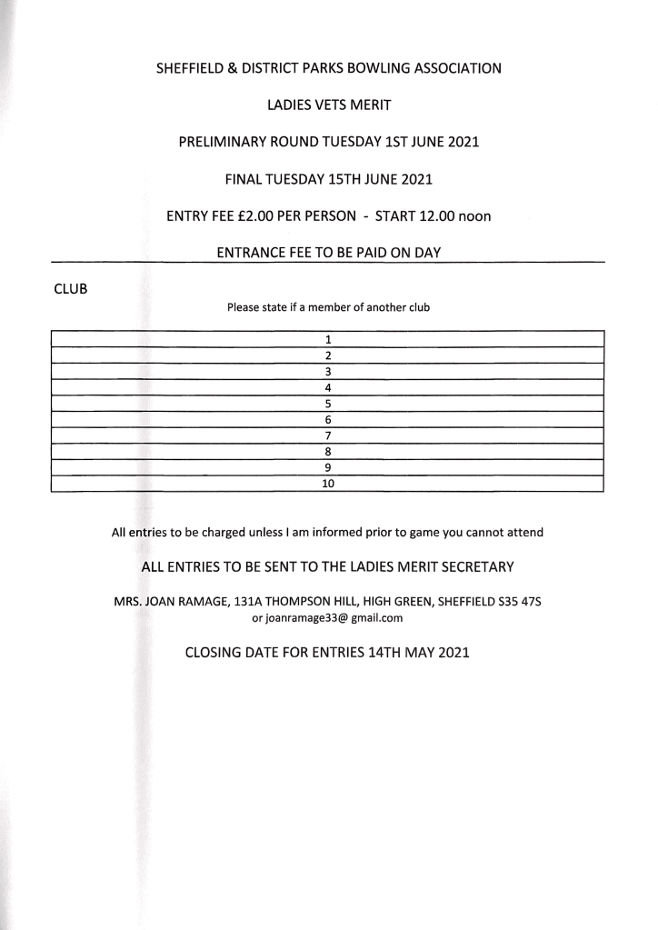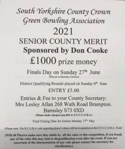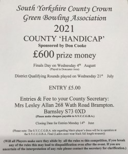 It is intended that the Club Handicap be run at MBC on Sunday 2nd May 2021. Start time is 10:30am with players asked to be at the green for 10:15am so that the draw can commence. Entries to Andrea Ainley on 07557332168 by phone or text or by email to: meersbrookbcsecretary@gmail.com