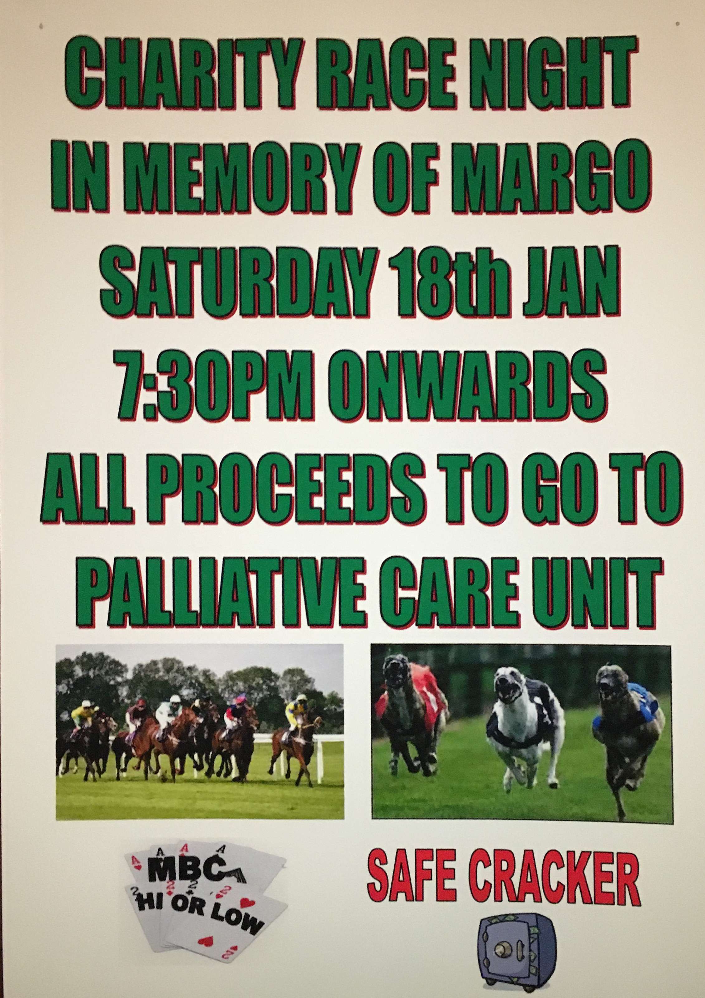 Race night in aid of the palliative care unit in memory of Margo Sinclair.