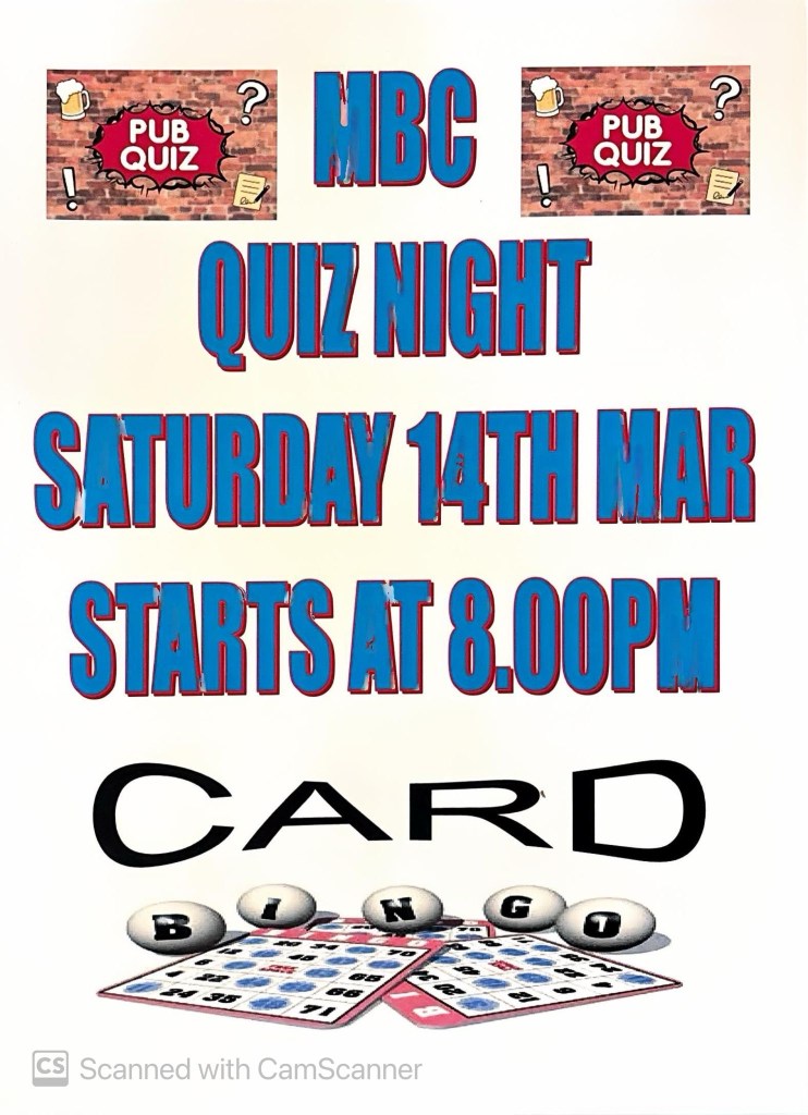 MBC Quiz Night will also return in March! If you’ve not managed to get to one before, come and have a go. You’ll never know if you can win if you don’t try! There’ll also be the usual other fun & games to try your luck at! Hope to see you there!